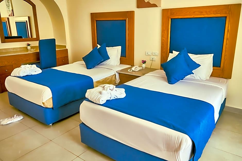 At , the fun doesn’t stop at the beach! With not just one, but two outdoor pools, your sun-soaked days will be filled with splashes and laughter. The kids can enjoy their own heated pool, which is designed just for them, while you lounge under the Egyptian sun or sip on a refreshing cocktail from the poolside bar. Don’t forget to pack your favorite pool floaties! With palm trees swaying gently overhead and plush sunbeds lining the nearby deck, it's the ideal setting for making a splash and soaking up those golden rays.